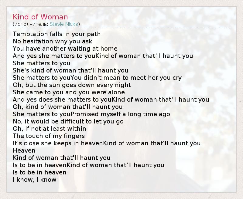 А как ты думаешь, о чем песня "Kind of Woman" ?