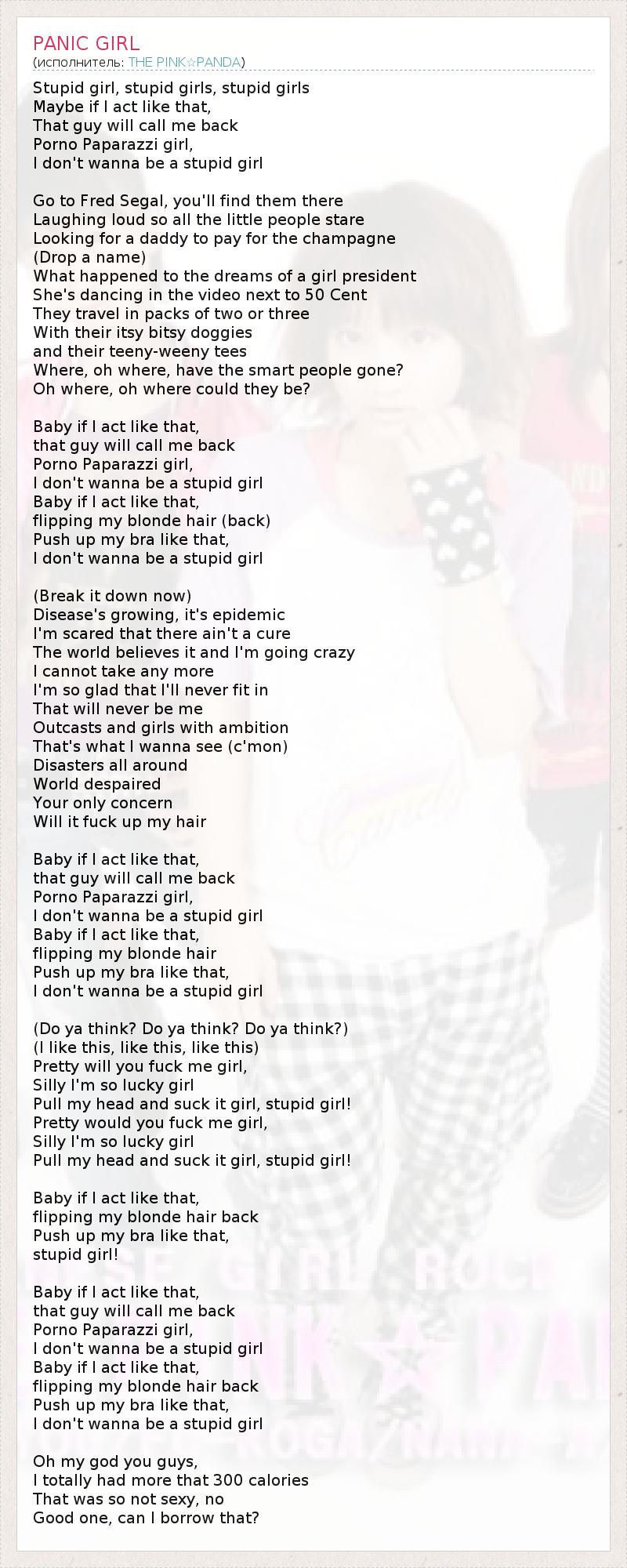 А как ты думаешь, о чем песня "PANIC GIRL" ?