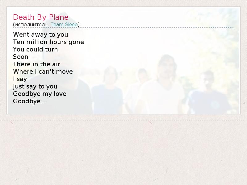 А как ты думаешь, о чем песня "Death By Plane" ?