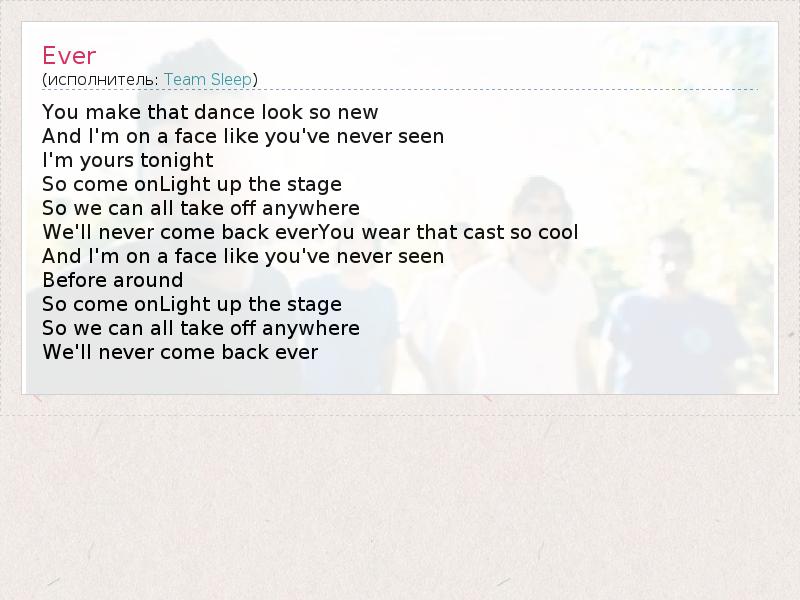 Это интересно:Состав TEAM SLEEP: Чино Морено (вокал, гитара), Тодд Вилкинсон (гитара), DJ Crook (Сэмплы, программирование), Зак Хилл (ударные) и Рик Верлетт (бас).А началось все в 1994 году с одной затеи Морено и его друга Тодда Уилкинсона. За 30 баксов парни купили четырехдорожечный рекордер и поочередно делали на нем записи и обменивались ими. Когда парни уже извели несколько пленок, к их забаве присоединился... продолжение