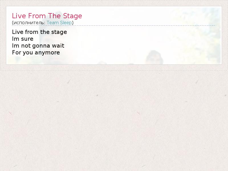 А как ты думаешь, о чем песня "Live From The Stage" ?