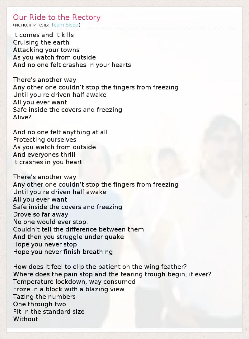 А как ты думаешь, о чем песня "Our Ride to the Rectory" ?
