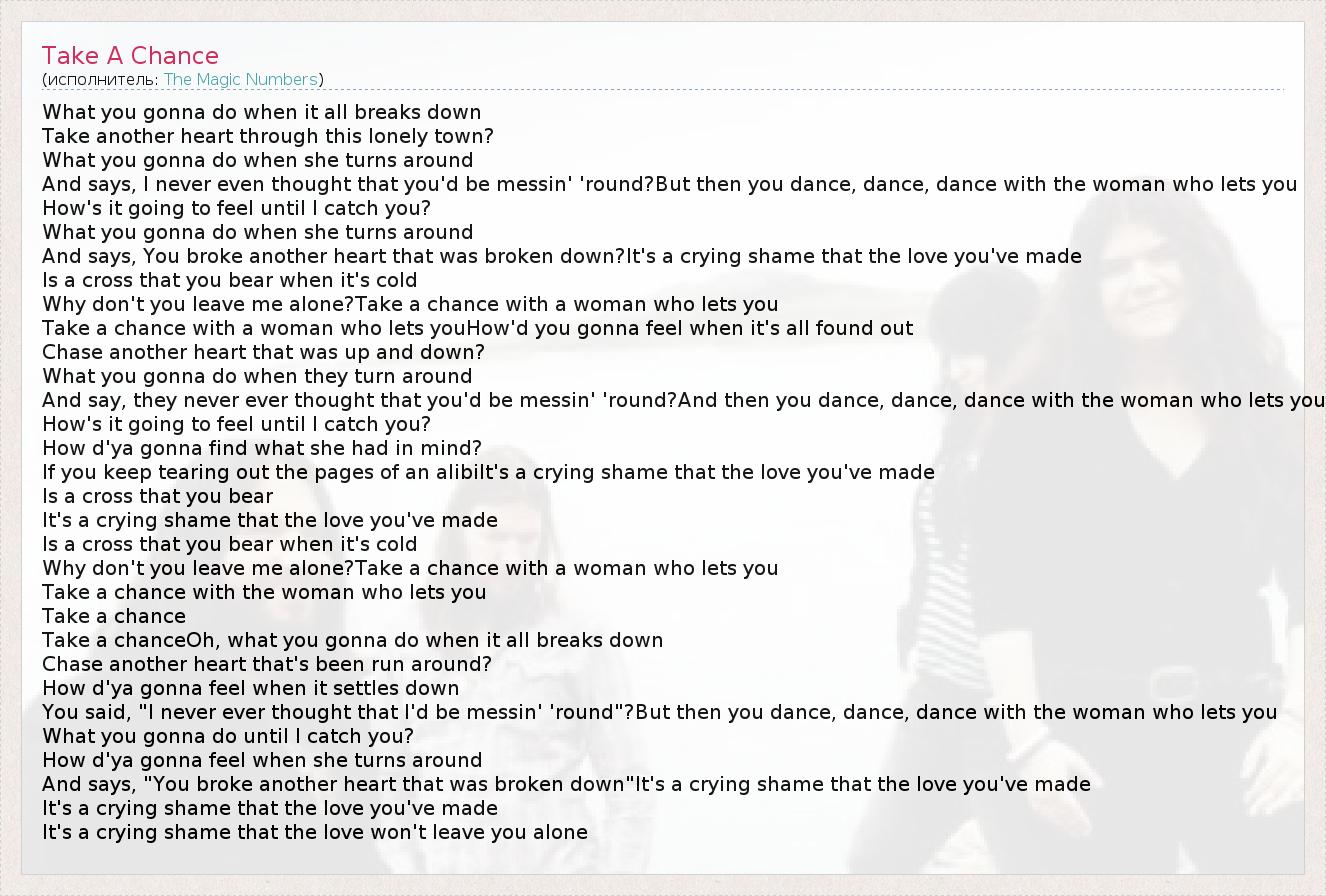 А как ты думаешь, о чем песня "Take A Chance" ?