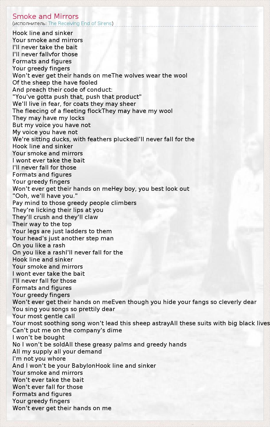 А как ты думаешь, о чем песня "Smoke and Mirrors" ?