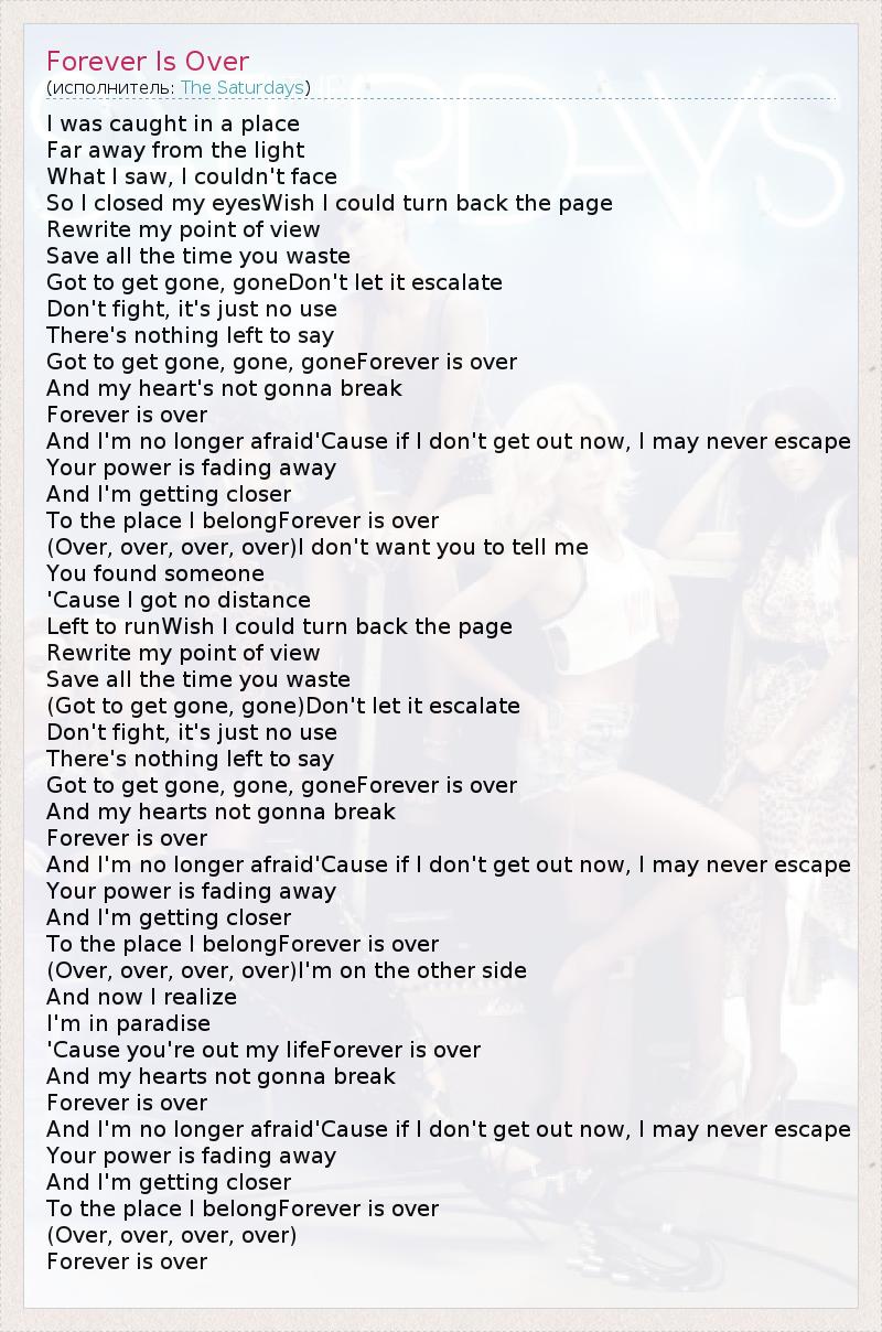 А как ты думаешь, о чем песня "Forever Is Over" ?