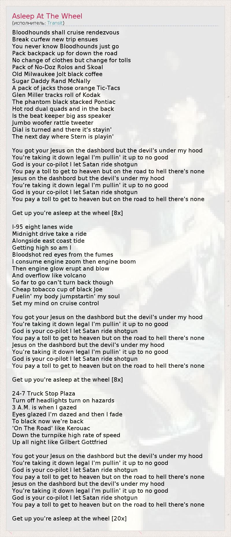 А как ты думаешь, о чем песня "Asleep At The Wheel" ?