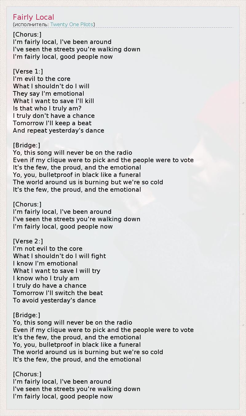 А как ты думаешь, о чем песня "Fairly Local" ?
