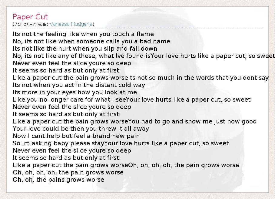 Like you no longer care for what I seeYour love hurts like a paper cut, so sweet