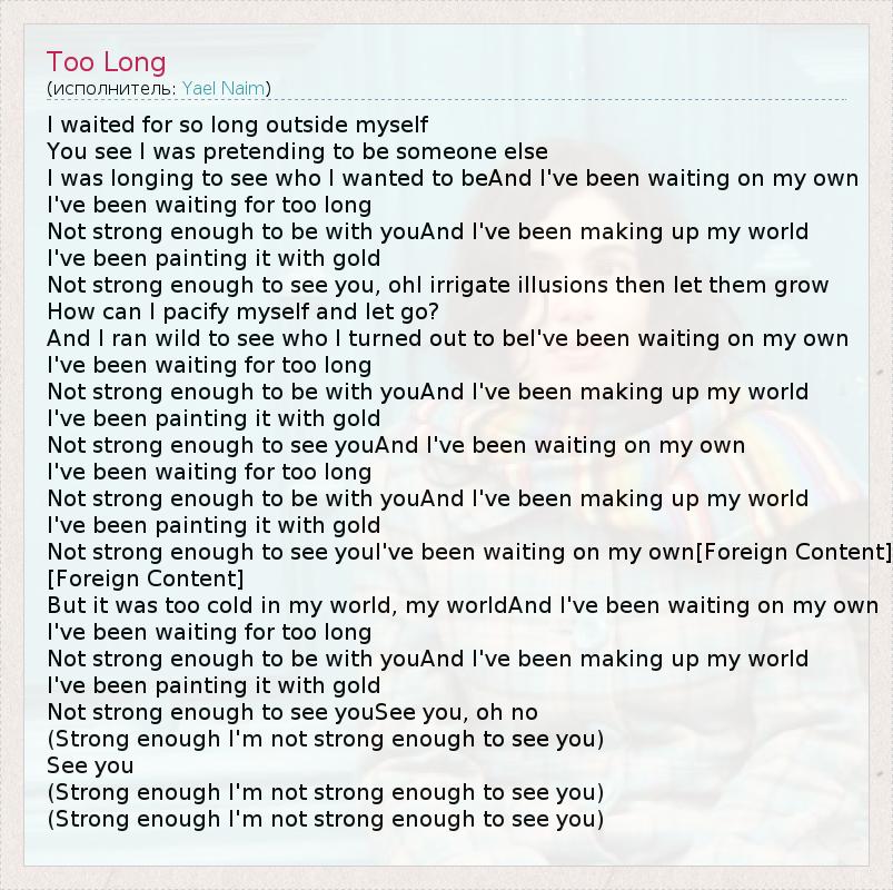 А как ты думаешь, о чем песня "Too Long" ?