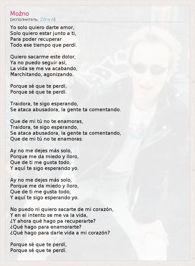 Yo solo quiero darte amor, Solo quiero estar junto a ti, Para poder recuperar Todo ese tiempo que perdí. Quiero sacarme este dolor, Ya no puedo seguir así, La vida se me va acabando, Marchitando, agonizando. Porque sé que te perdí, Porque sé que te perdí. Traidora, te sigo esperando, Se ataca abusadora, la gente ta comentando. Que de mi tú no te enamoras, Traidora, te sigo esperando, Se ataca abusadora, la gente ta comentando, Que de mi tú no te enamoras. Ay no me dejes más solo, Porque me da miedo y lloro, Que de ti me gusta todo, Y aquí te sigo esperando yo. Ay no me dejes más solo, Porque me da miedo y lloro, Que de ti me gusta todo, Y aquí te sigo esperando yo. No puedo ni quiero sacarte de mi corazón, Y en el intento se me va la vida, ¿Y ahora qué hago pa recuperarte? ¿Qué hago para enamorarte? ¿Qué hago para darle vida a mi corazón? Porque sé que te perdí, Porque sé que te perdí.
