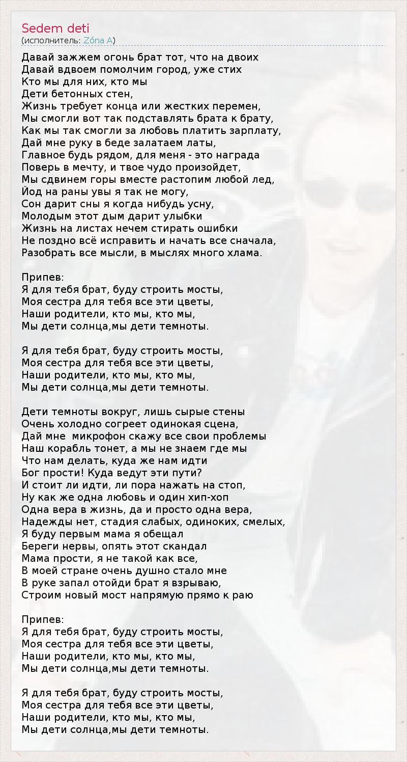 А как ты думаешь, о чем песня "Sedem deti" ?
