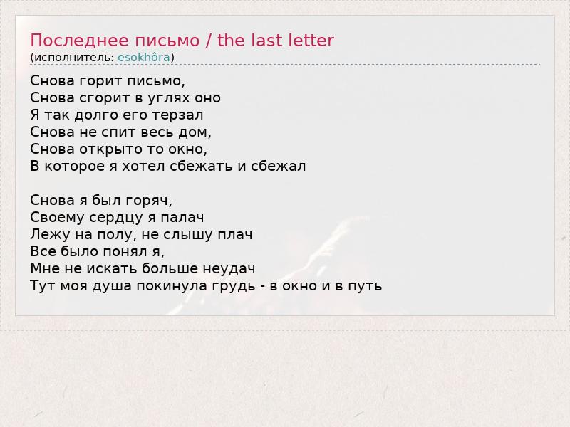А как ты думаешь, о чем песня "Последнее письмо / the last letter" ?
