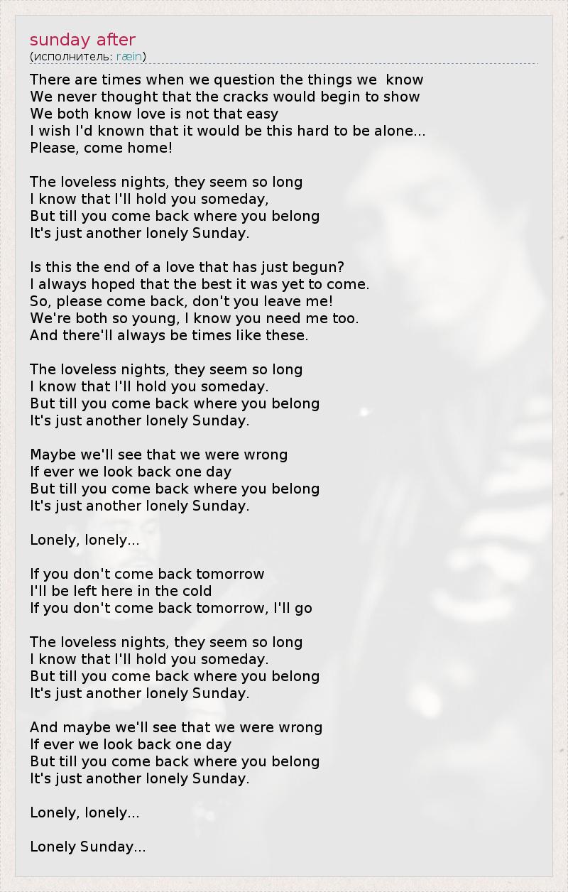 А как ты думаешь, о чем песня "sunday after" ?