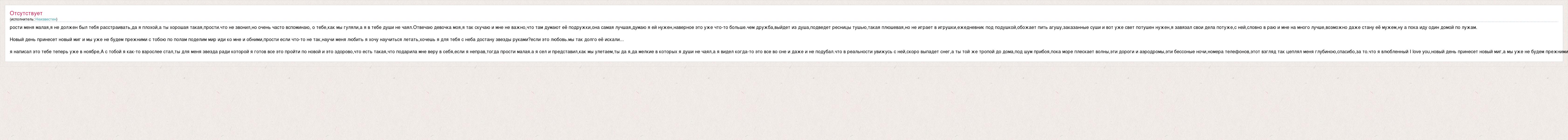 рости меня малая,я не должен был тебя расстраивать,да я плохой,а ты хорошая такая,прости.что не звонил,но очень часто вспоминаю, о тебе,как мы гуляли,а я в тебе души не чаял.Отвечаю девочка моя,я так скучаю и мне не важно,что там думают её подружки,она самая лучшая,думаю я ей нужен,наверное это уже что-то больше.чем дружба,выйдет из душа,подведет ресницы тушью,такая плюшевая,но не играет в игрушки,ежедневник под подушкой,обожает пить агушу,заказанные суши и вот уже свет потушен нужен,я завязал свои дела потуже,с ней,словно в раю и мне на много лучше,возможно даже стану её мужем,ну а пока иду один домой по лужам. Новый день принесет новый миг и мы уже не будем прежними с тобою по полам поделим мир иди ко мне и обними,прости если что-то не так,научи меня любить я хочу научиться летать,хочешь я для тебя с неба достану звезды руками?если это любовь.мы так долго её искали... я написал это тебе теперь уже в ноябре,А с тобой я как-то взрослее стал,ты для меня звезда ради которой я готов все это пройти по новой и это здорово,что есть такая,что подарила мне веру в себя,если я неправ,тогда прости малая.а я сел и представил,как мы улетаем,ты да я,да мелкие в которых я души не чаял,а я видел когда-то это все во сне и даже и не подубал.что в реальности увижусь с ней,скоро выпадет снег,а ты той же тропой до дома,под шум прибоя,пока море плескает волны,эти дороги и аэродромы,эти бессоные ночи,номера телефонов,этот взгляд так цеплял меня глубиною,спасибо,за то.что я влюбленный I love you,новый день принесет новый миг,а мы уже не будем прежними