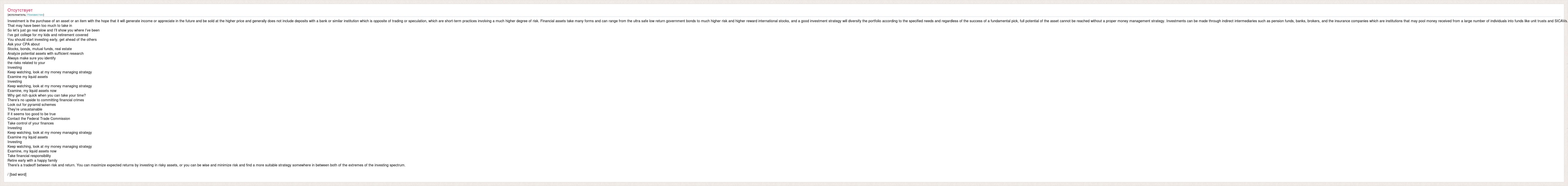 А как ты думаешь, о чем песня "Investment is the purchase of an asset or an item with the hope that it" ?