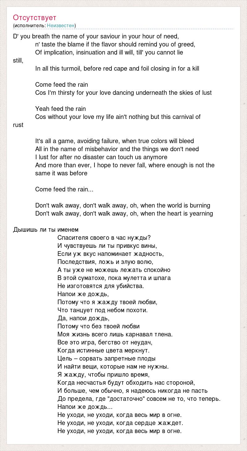 Не уходи, не уходи, когда весь мир в огне.