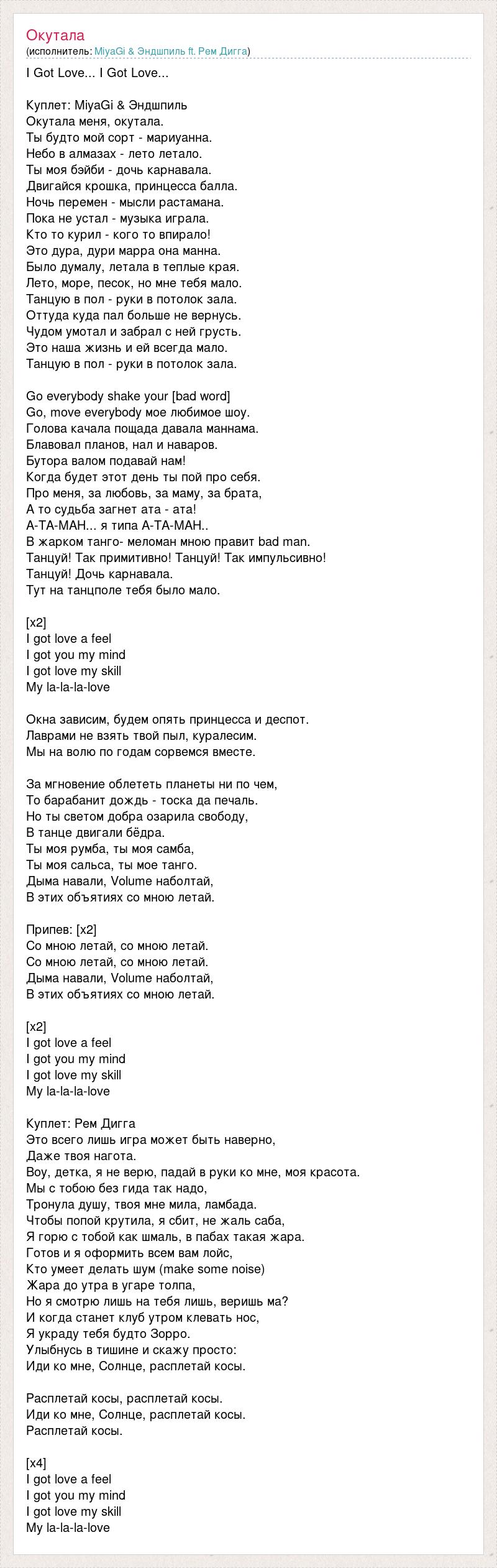 А как ты думаешь, о чем песня "I Got Love... I Got Love..." ?