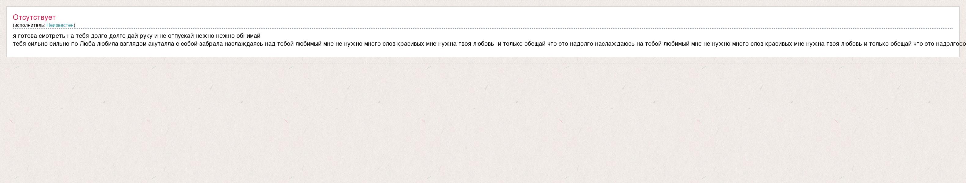 Главная→Исполнители→Неизвестен→я готова смотреть на тебя долго долго дай руку и не отпускай нежно нежно об